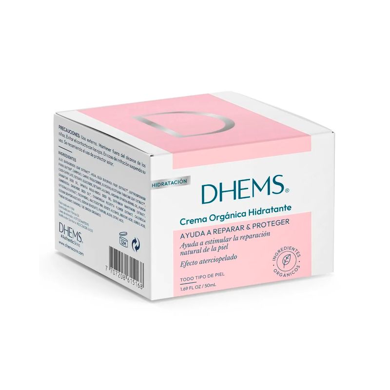 Crema facial hidratante de uso diario con ingredientes de origen orgánico, textura ligera y rápida absorción; presentación en tubo de 50 ml.